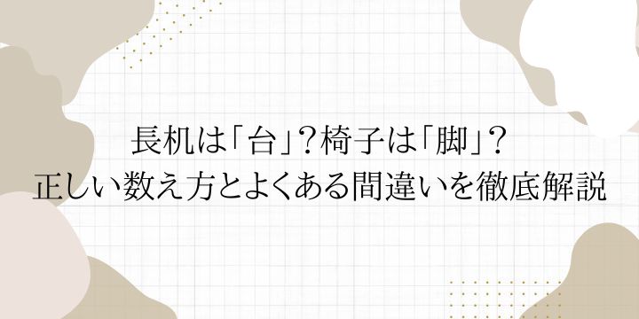 特に仕事や地域活動などで「机◯台」「椅子◯脚」といった表現を正しく使えると、相手から「しっかりしている」と信頼されやすくなりますよ。